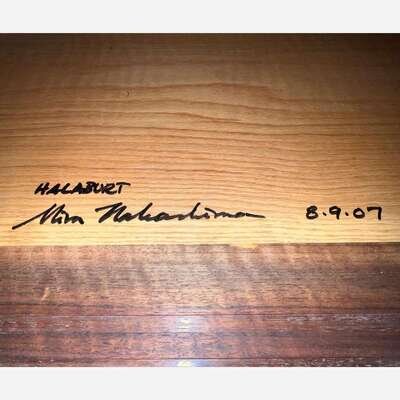 Signed, dated, and inscribed with client's name: "Mira Nakashima 8.9.07", "Halaburt"