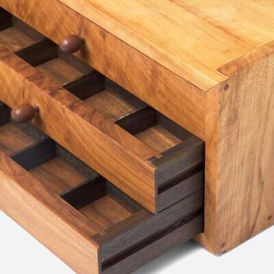 Dogwood, walnut, interior of drawers with removable rosewood dividers