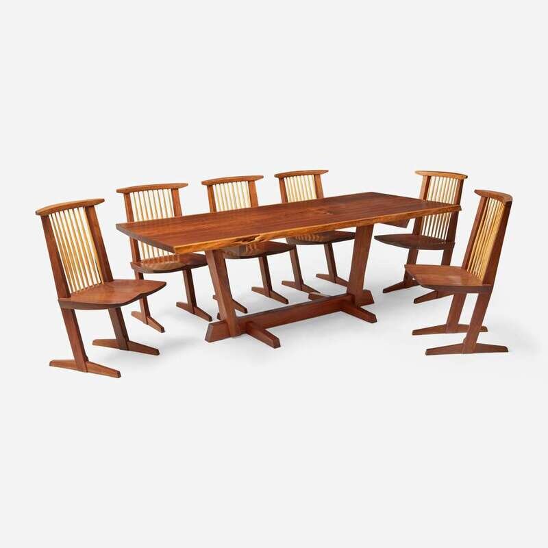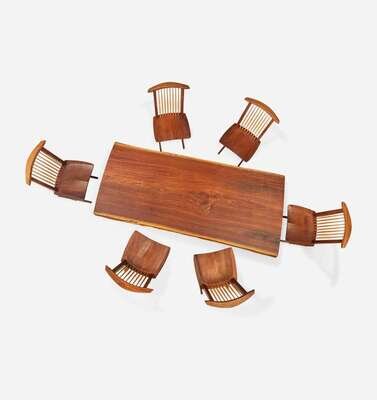 Mira Nakashima (American, b. 1942) Fine Single-Board "Conoid" Dining Table and Set of Six Single-Board "Conoid" Dining Chairs, George Nakashima Woodworker, New Hope, Pennsylvania, 2007