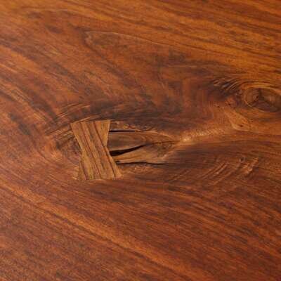The table: American black walnut with single-board top retaining two bullet fragments, and single laurel butterfly