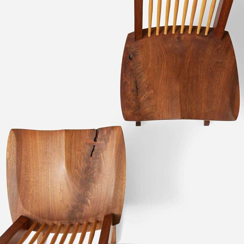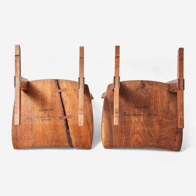 Mira Nakashima (American, b. 1942) Pair of Special Single-Board Seat "Conoid Host" Chairs, George Nakashima Woodworker, New Hope, Pennsylvania, 2007