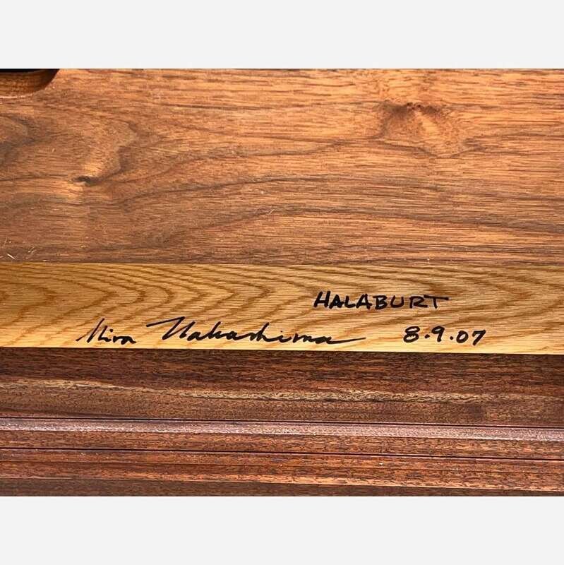 Signed, dated, and inscribed with client's name: "Mira Nakashima 8.9.07", "Halaburt"