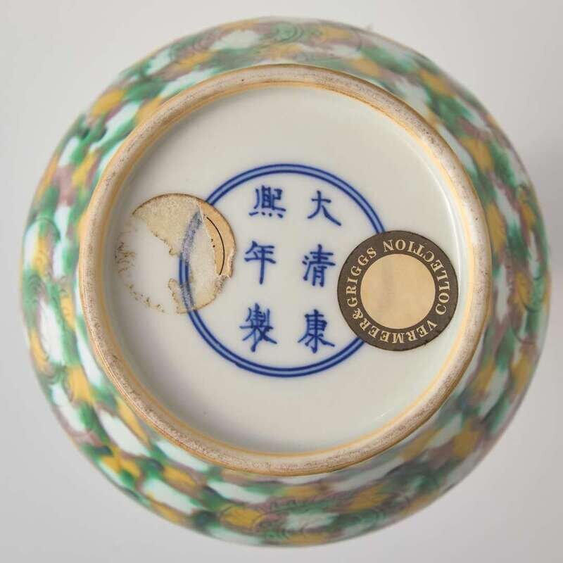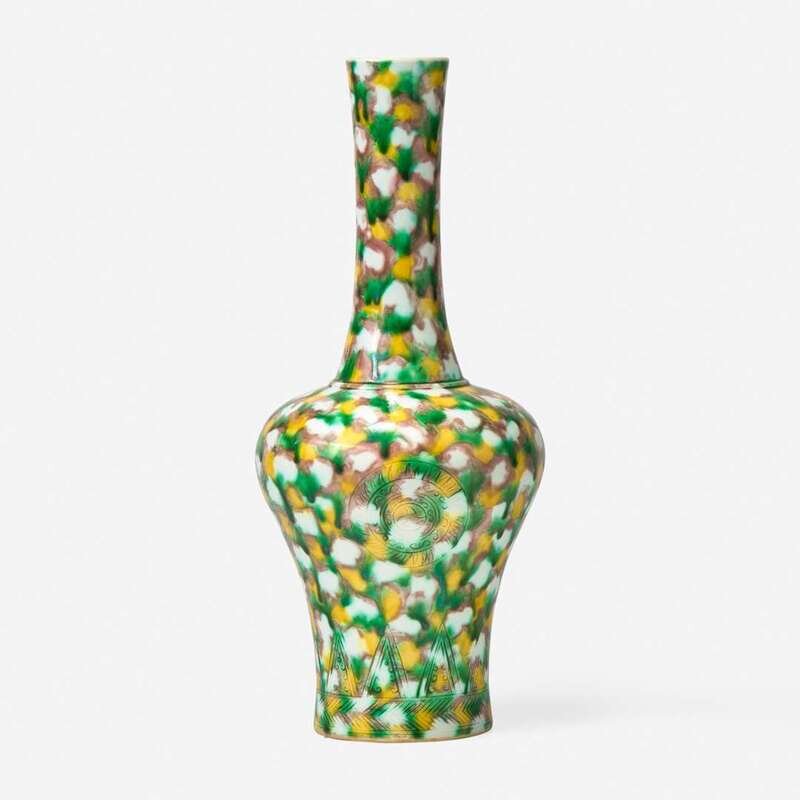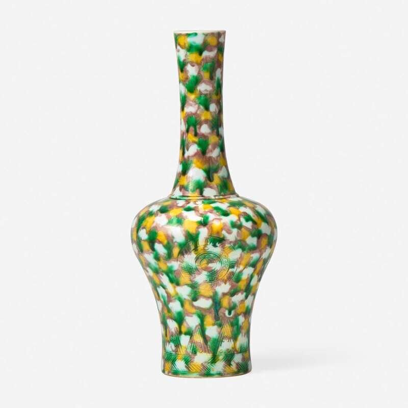 A Chinese sancai "egg and spinach" glazed mallet vase 三彩盤口瓶 Kangxi six-character mark ?????