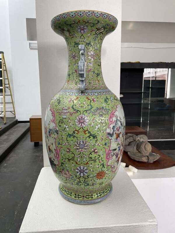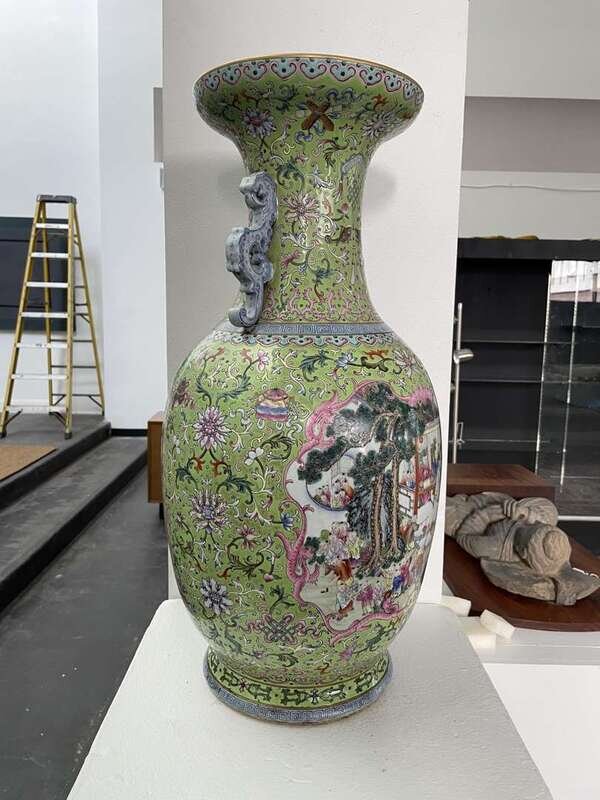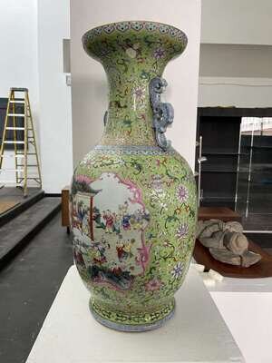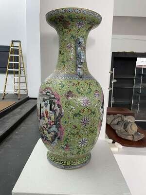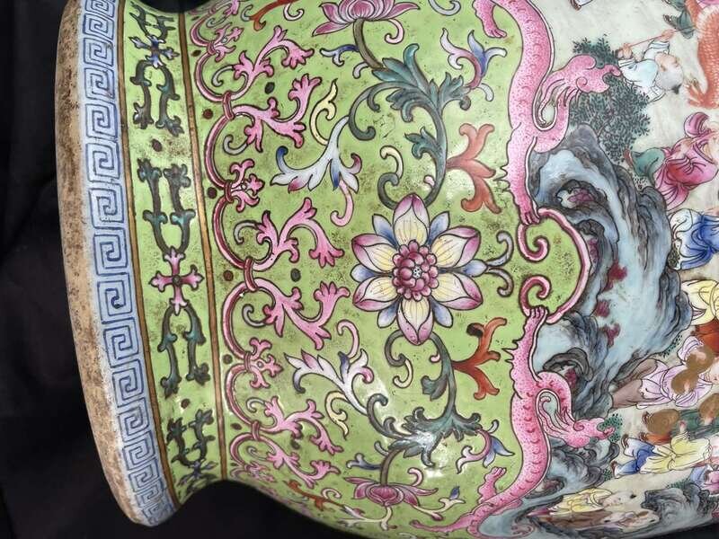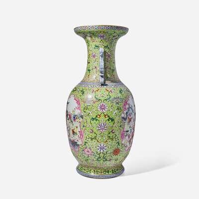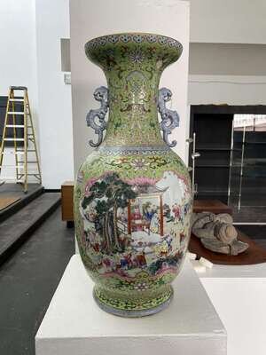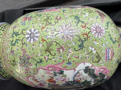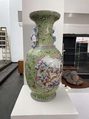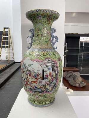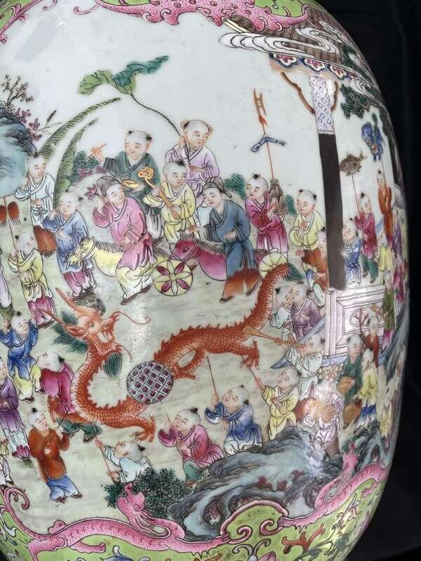 A large Chinese famille rose-decorated "Boys" Vase 粉彩嬰戲圖開光雙耳大瓶 Jiaqing mark ???