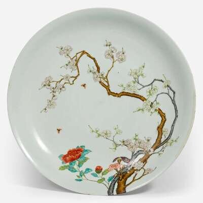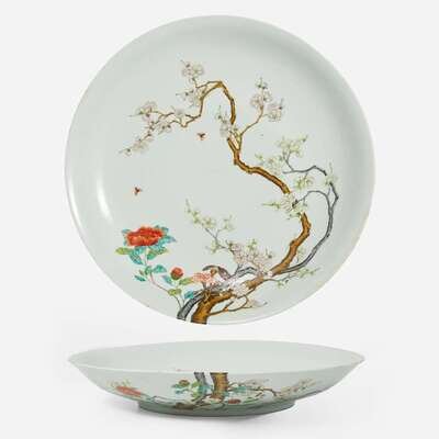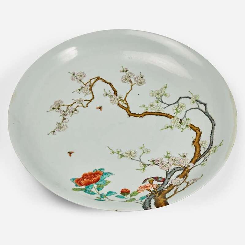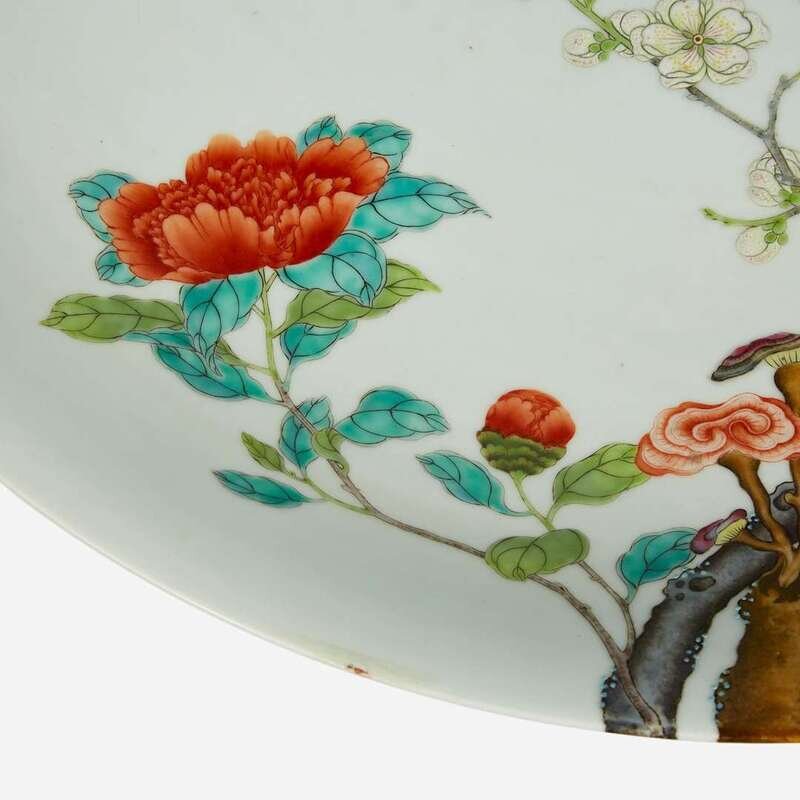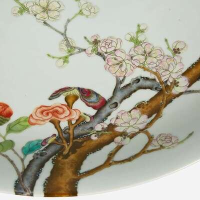 A large Chinese enameled porcelain floral charger 琺瑯彩過枝花卉大盤 Yongzheng six-character mark ?????????