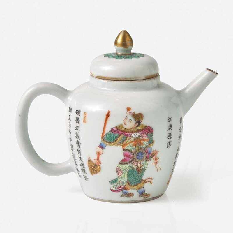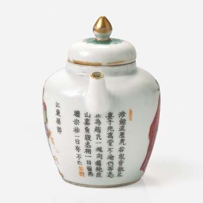 A small Chinese famille rose-enameled porcelain "Wu Shuang Pu" type teapot 粉彩無雙譜茶壺