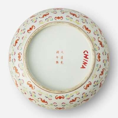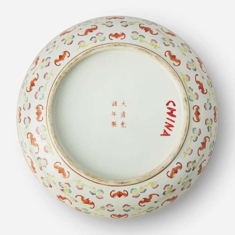 A Chinese famille rose-decorated porcelain “Thousand Bats” charger “洪福齊天”盤 Guangxu six-character mark and of the period ??? ? ??