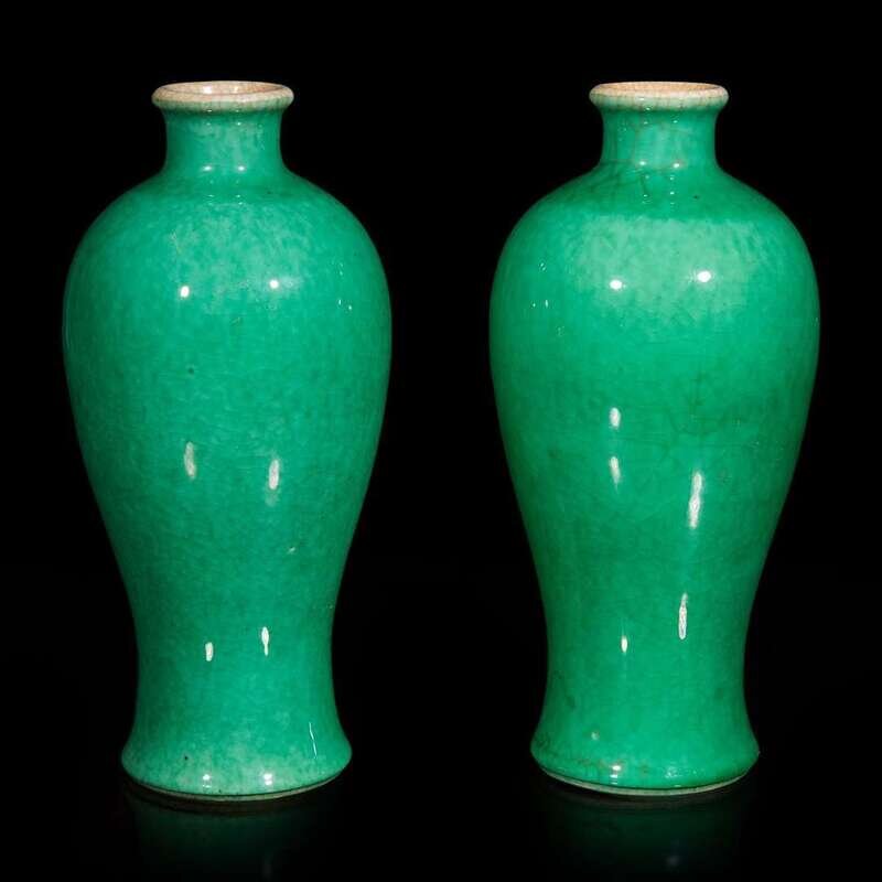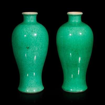 A pair of Chinese green-glazed vases, meiping 綠釉梅瓶一對