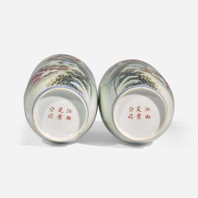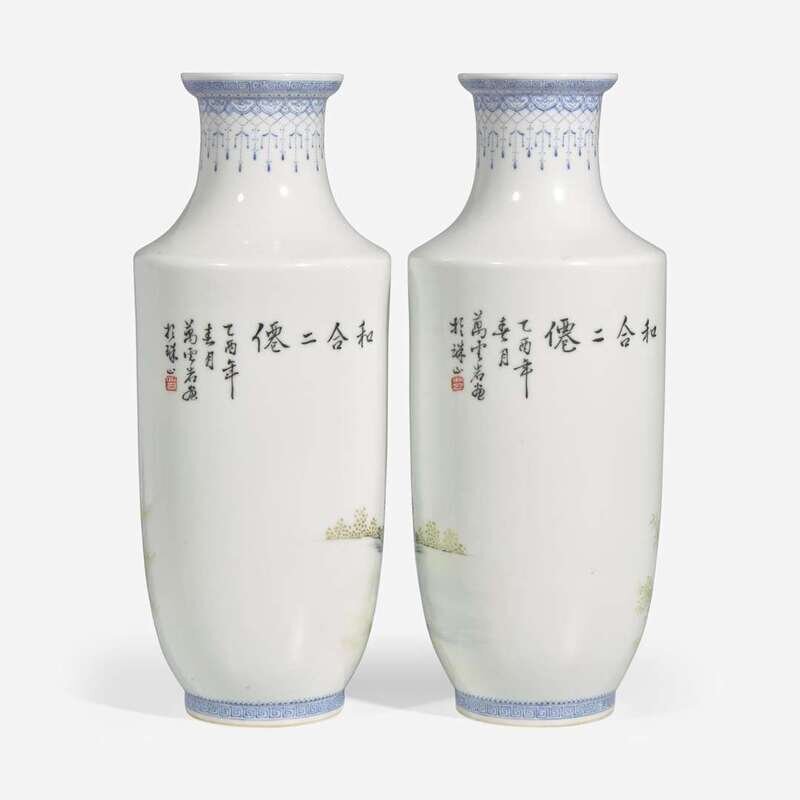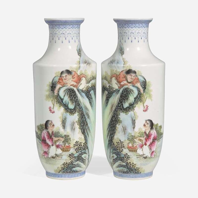 A pair of famille rose-decorated porcelain vases 粉彩"和合二仙"瓶一對 Republic period ??
