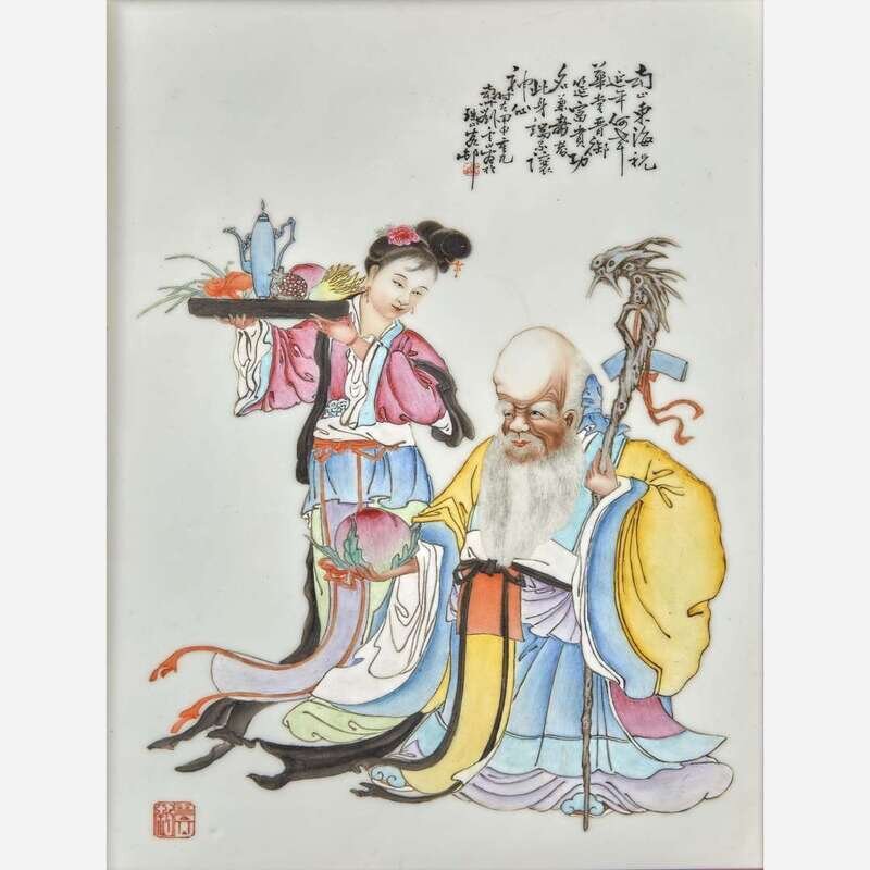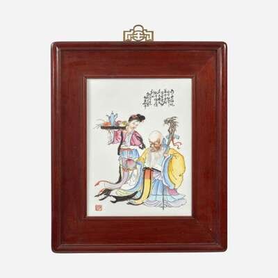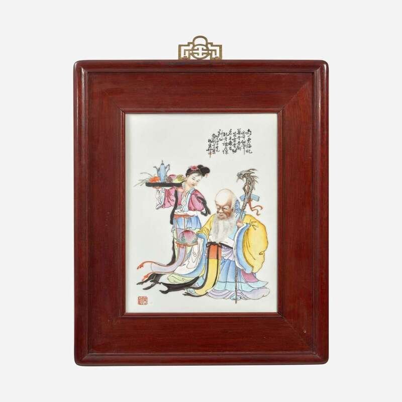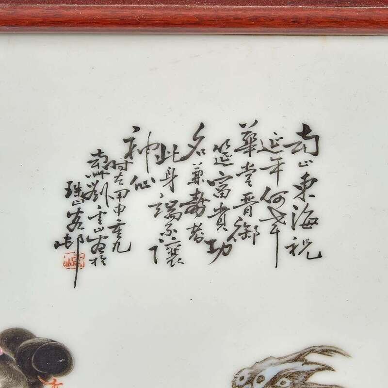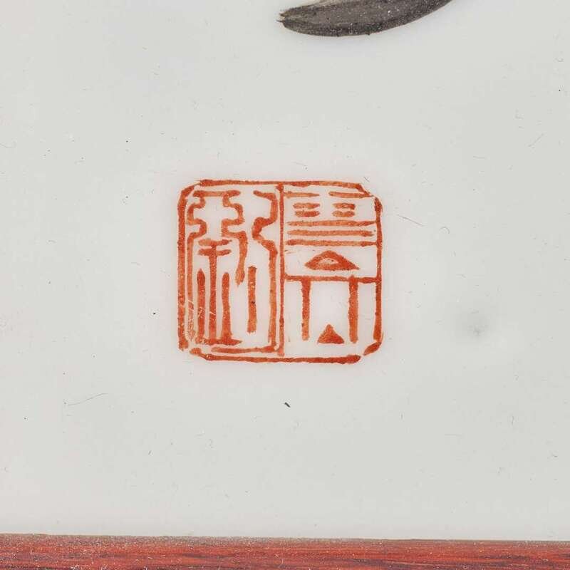 A Chinese famille rose-decorated porcelain plaque 粉彩瓷屏 20th century ????