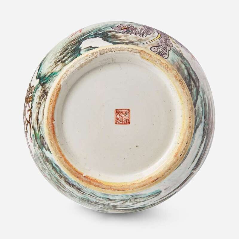 Of pyriform decorated with phoenix and birds among flowers, underside with Qianlong mark