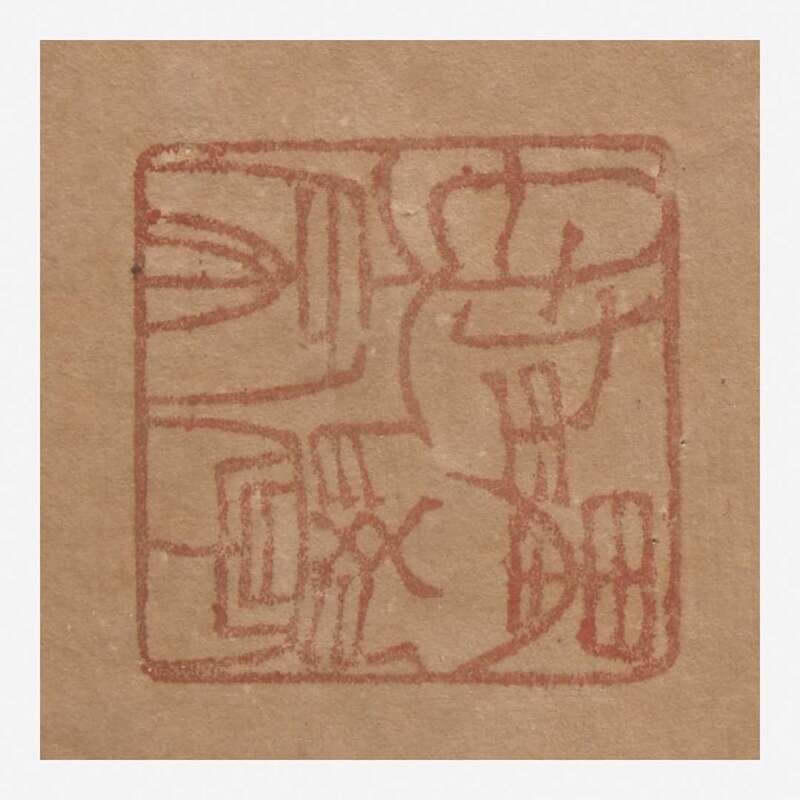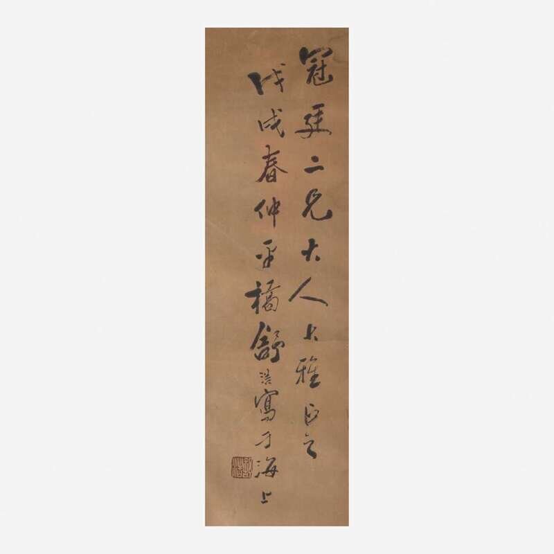 Ink and color on paper, inscribed upper right with one seal, another seal lower left; framed matted and glazed
