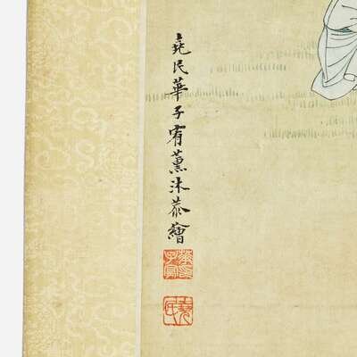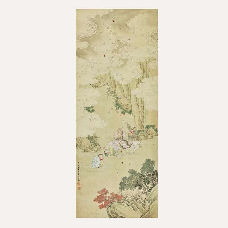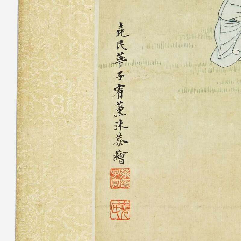 Ink and color on silk, inscribed and with two seals lower left, mounted as a hanging scroll