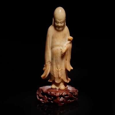 A Chinese carved soapstone figure of Shoulao 壽山石雕羅漢 Qing dynasty ?