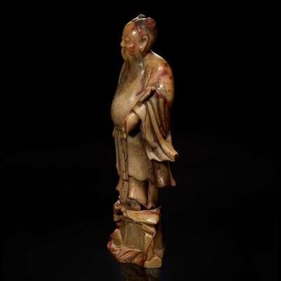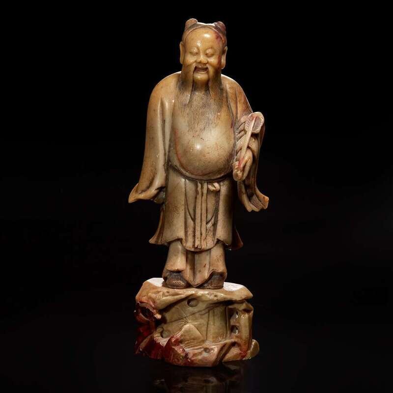 A Chinese carved beige soapstone figure of the Daoist immortal Zhongli Quan 壽山石雕鐘離權 Qing dynasty ?