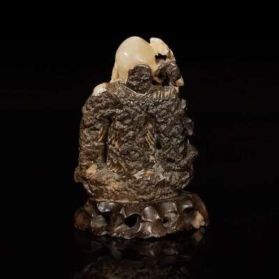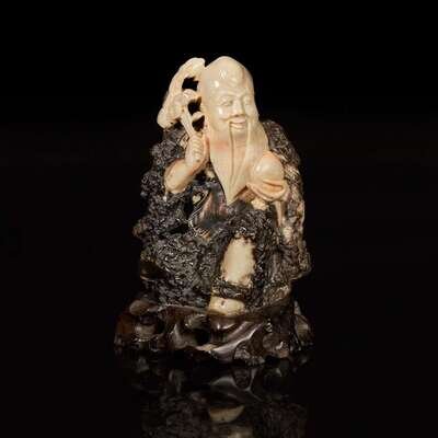 A Chinese carved beige and dark brown soapstone figure of Shoulao 棕灰壽山石雕壽老 19th/20th century ???????