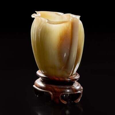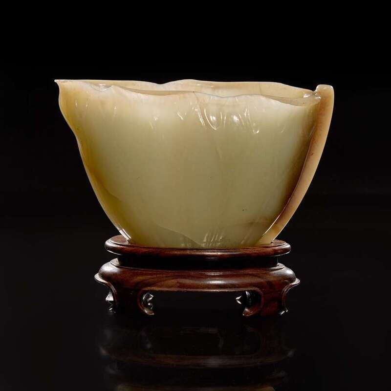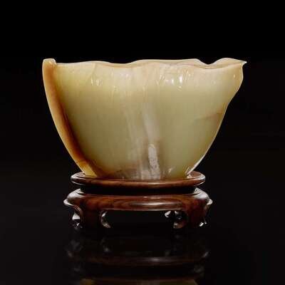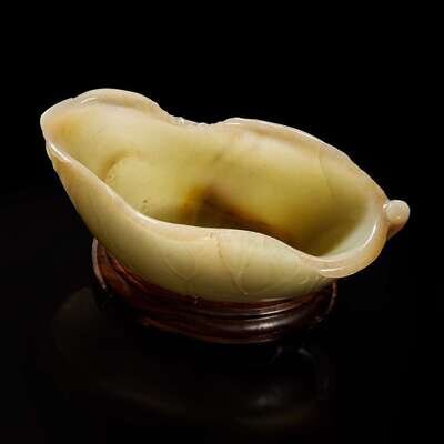 A Chinese carved celadon jade "Lotus" coupe 蓮葉玉杯