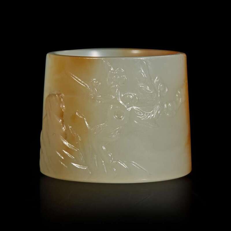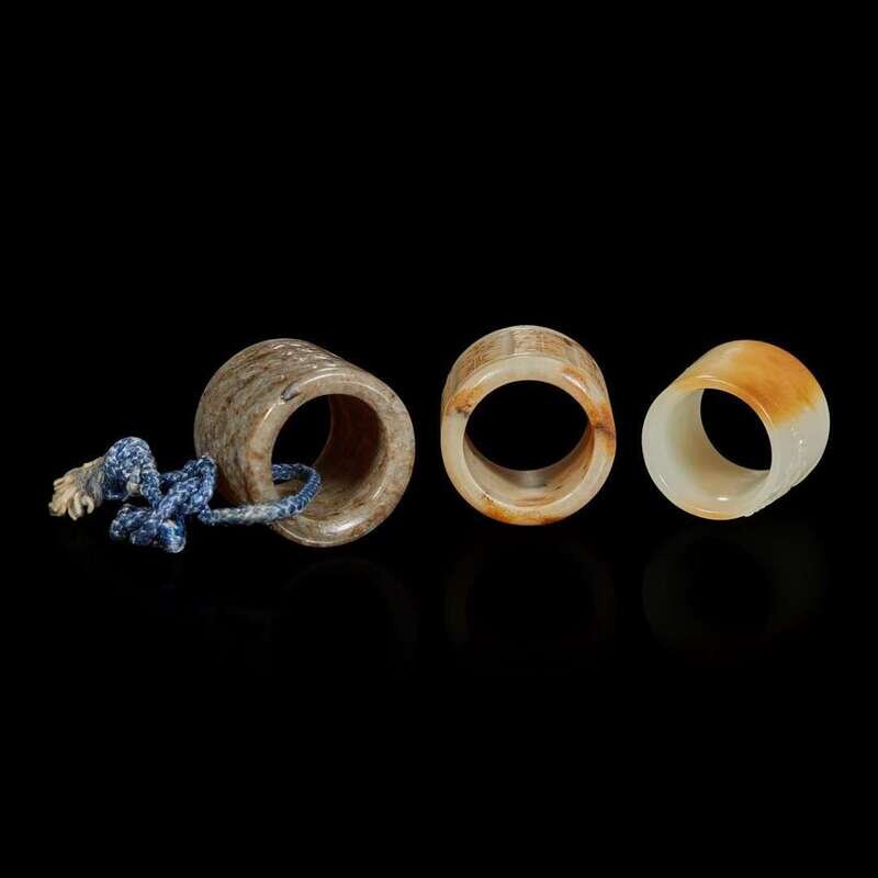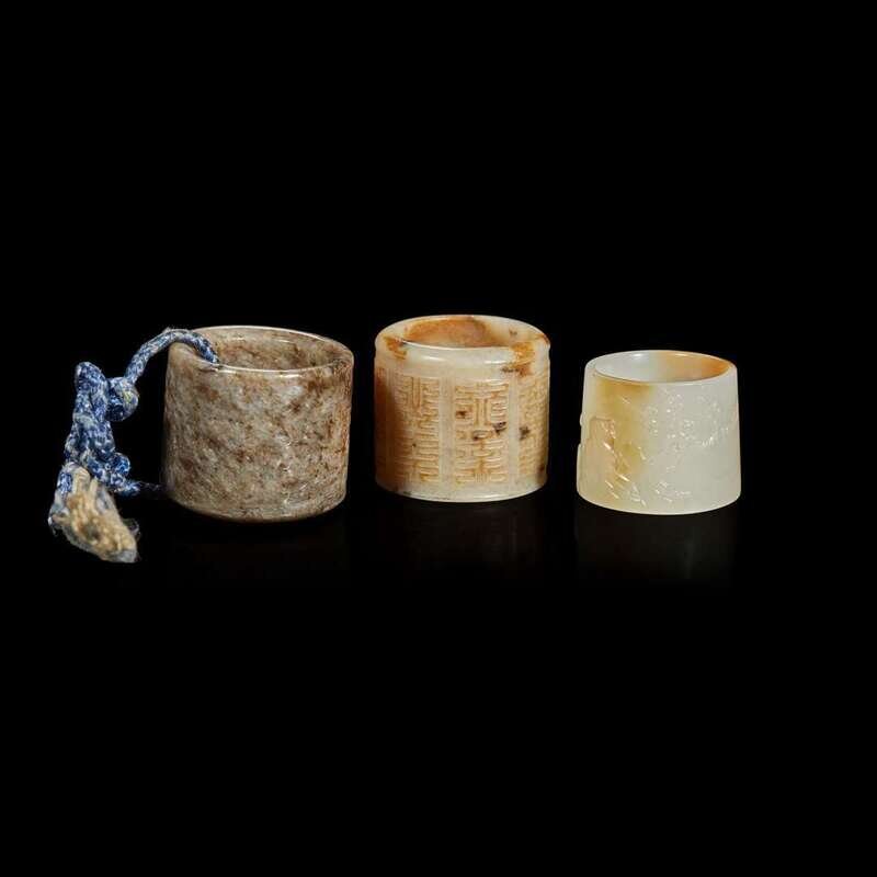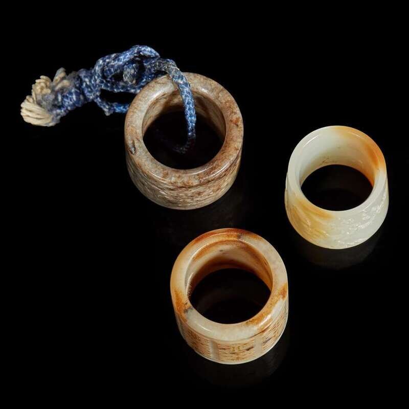 Three Chinese carved jade thumb rings 玉扳指三件