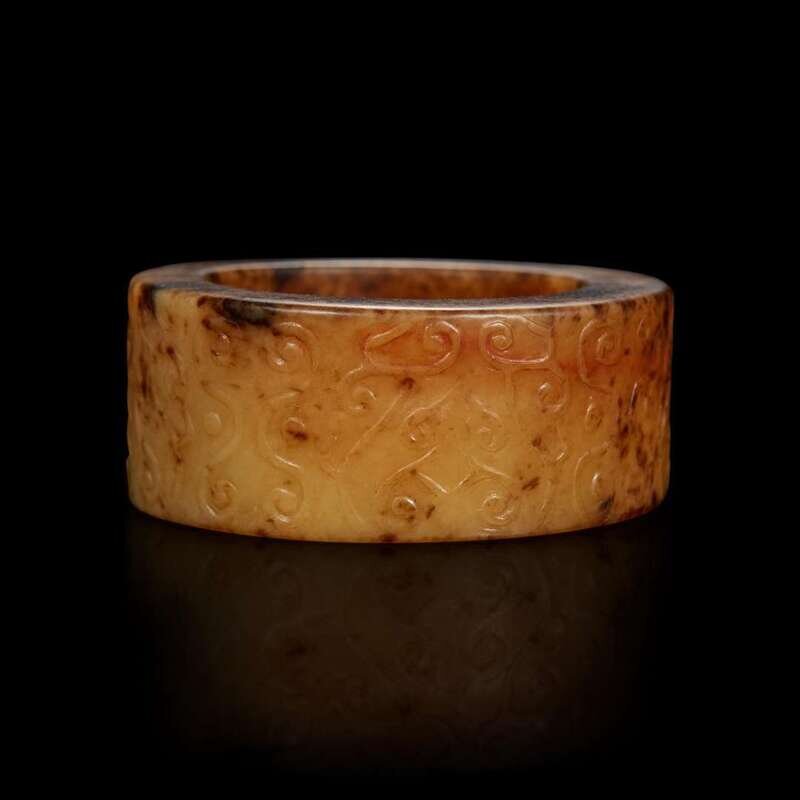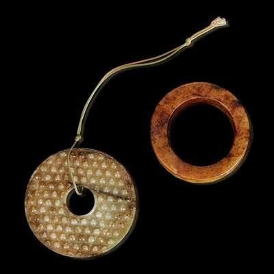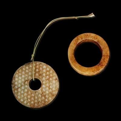 A Chinese archaistic carved beige jade bi and a large ring 高古風格玉璧與玉環各一件
