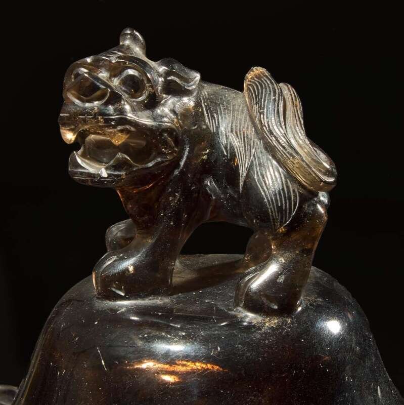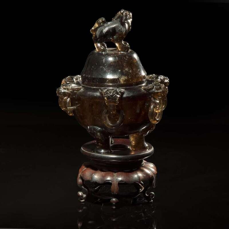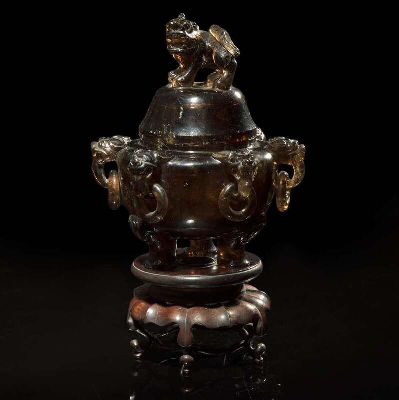 A Chinese smokey quartz censer and cover 烟晶石带盖香炉