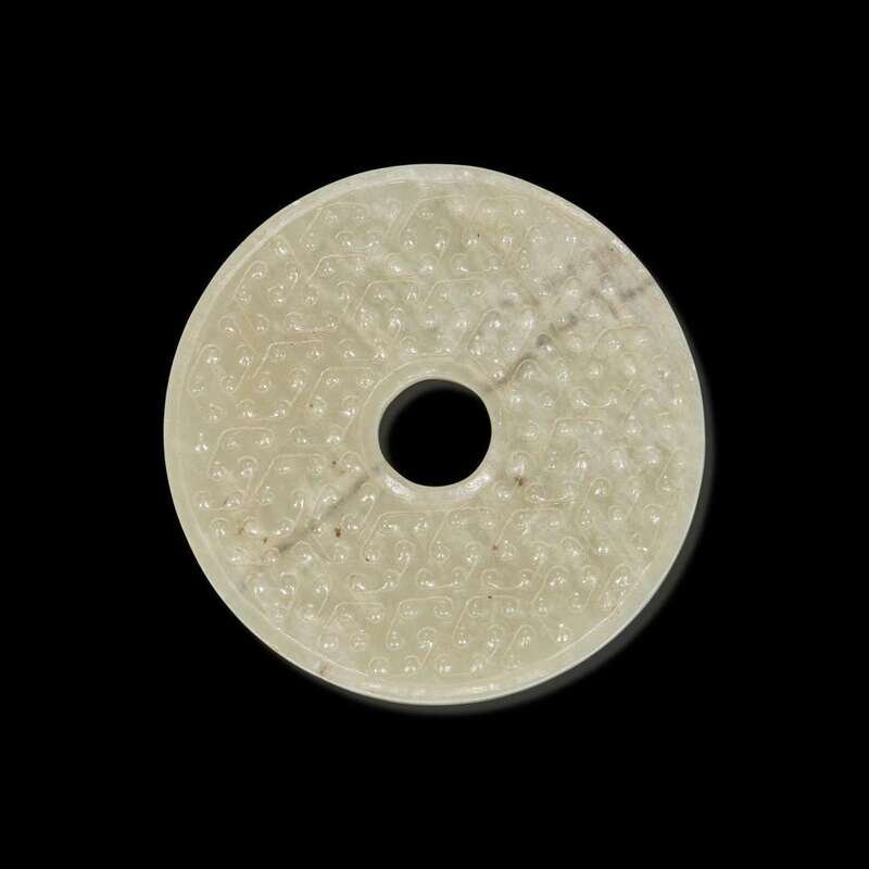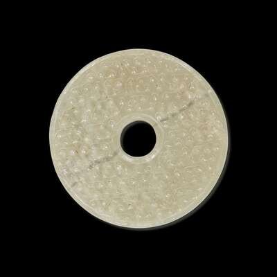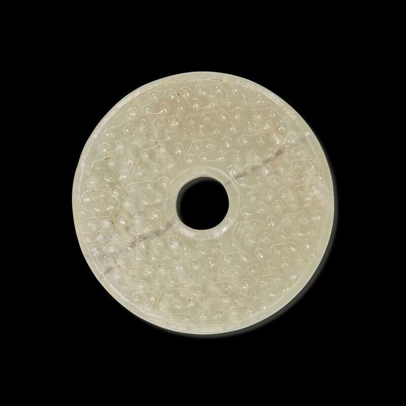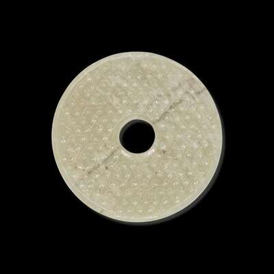A Chinese greyish white jade archaistic bi disk 灰白玉璧