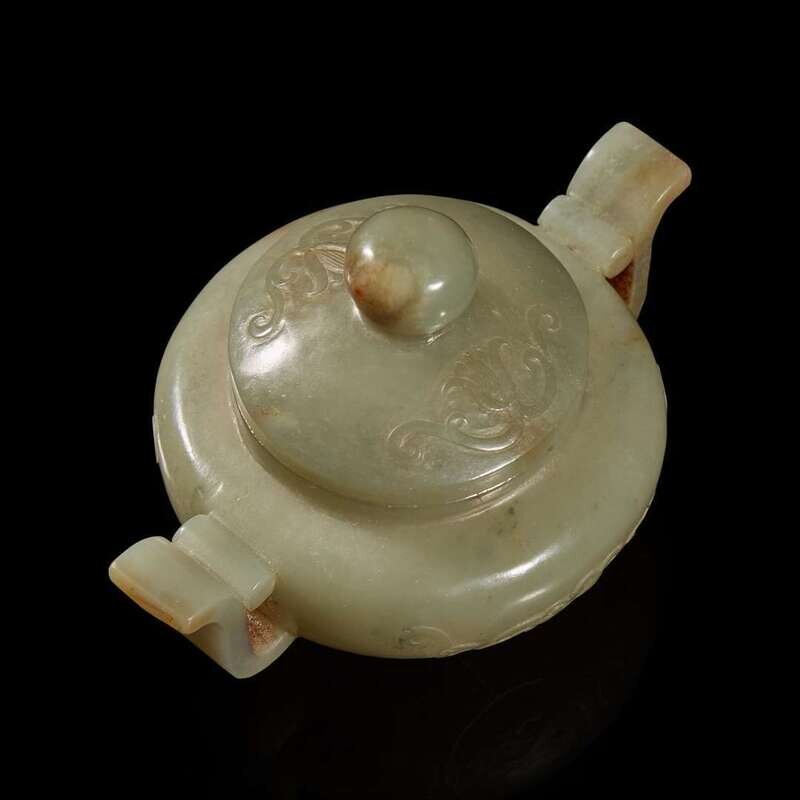 A Chinese greyish celadon small censer and cover 灰青玉帶小香爐