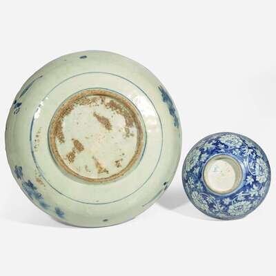 A Chinese blue and white bowl and a "Swatow" dish 青花盌及汕頭盤各一隻 Ming dynasty 15th/16th Century ? ???????