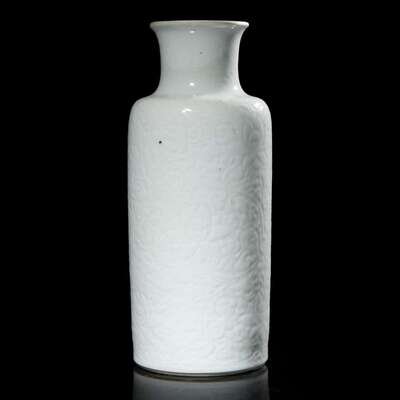 A Chinese carved white porcelain sleeve vase 白瓷刻劃花燈籠瓶 Kangxi period ? ??