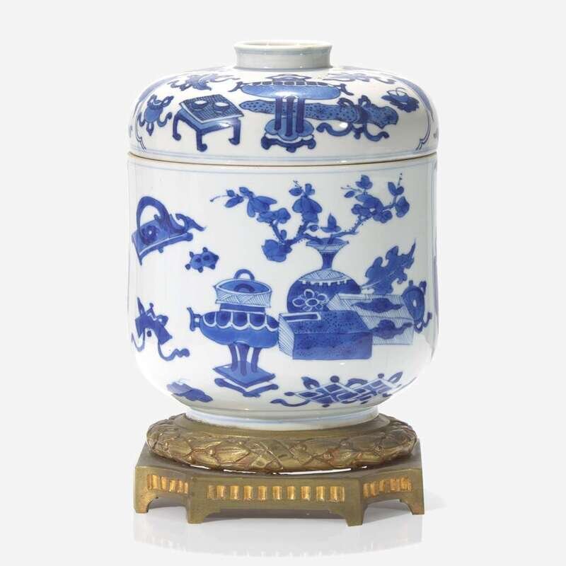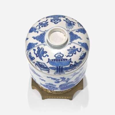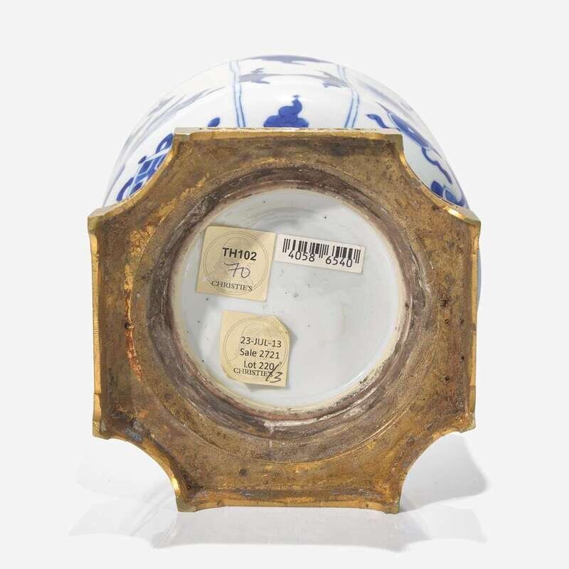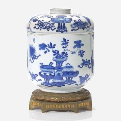 An ormolu-mounted Chinese blue and white porcelain jar and cover 嵌銅鎏金青花蓋罐 The porcelain Kangxi period ?? ? ??