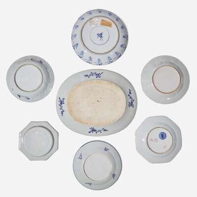 Seven assorted Chinese export blue and white porcelain dishes 青花外銷瓷盤一組七件 Kangxi to Jiaqing period ? ?????