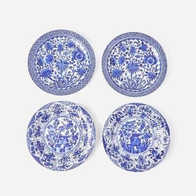 Four assorted Chinese export blue and white porcelain dishes 外銷瓷青花瓷盤一組四件 Kangxi period and later ? ?? ???