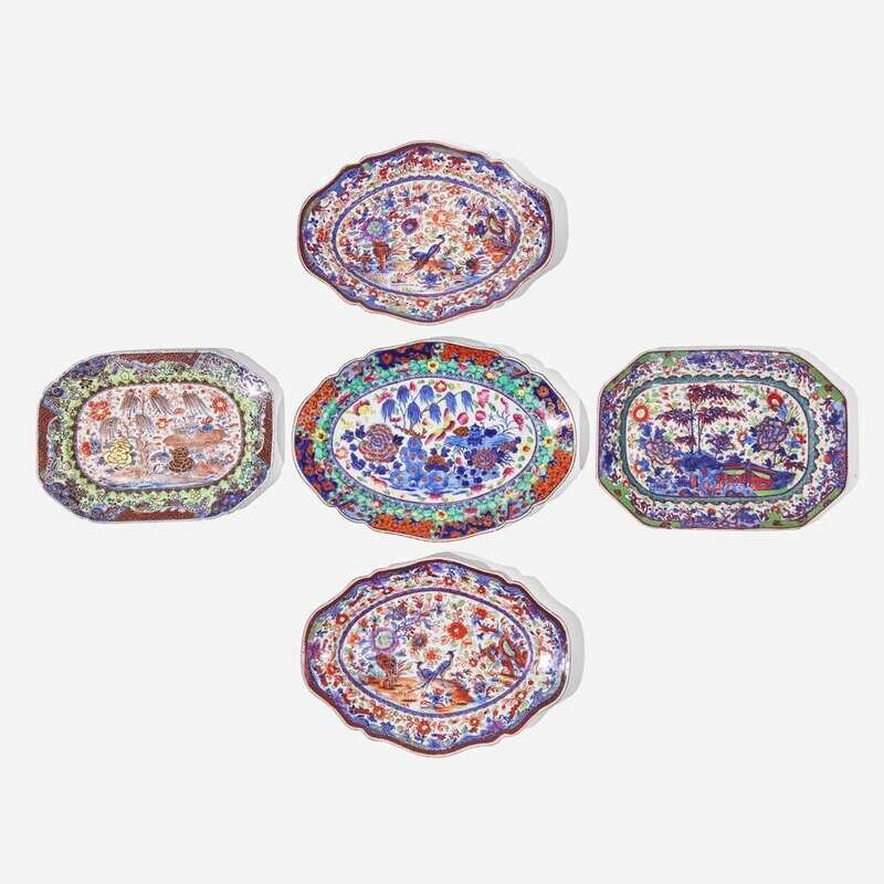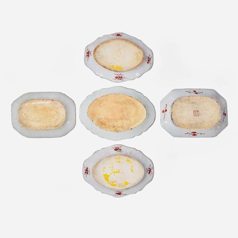 Five assorted Chinese export clobbered porcelain trays 外銷瓷盤五件 Late 18th to early 19th century ???????????