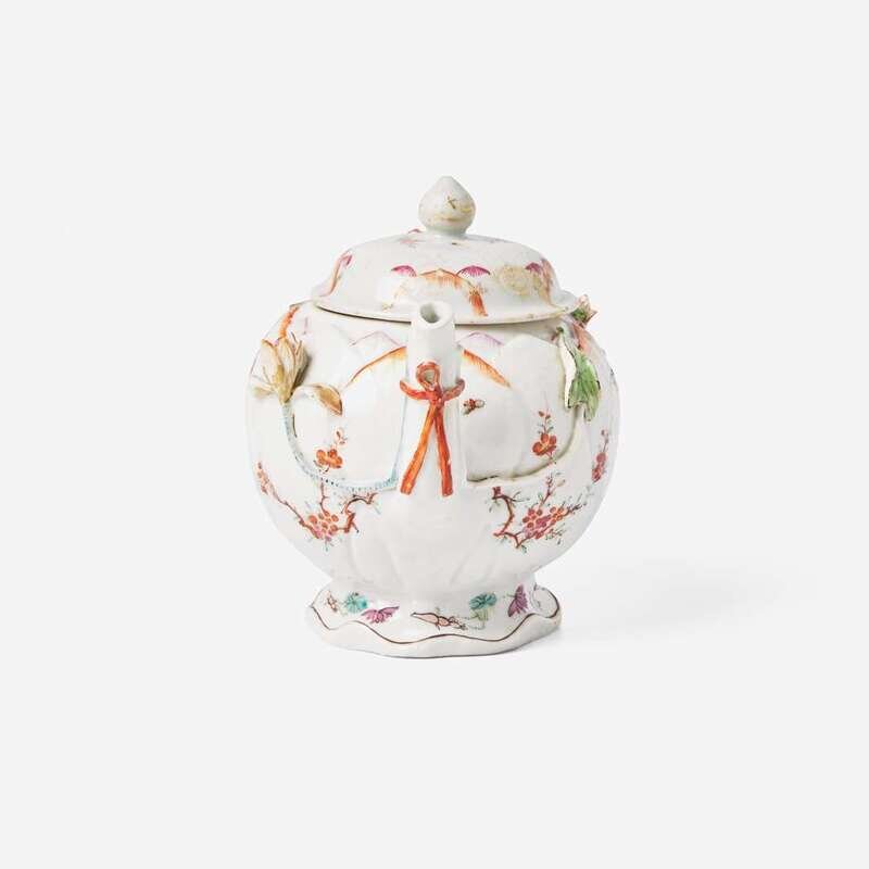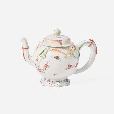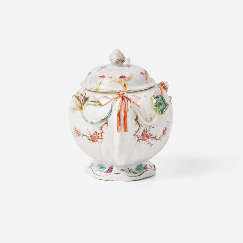 An unusual Chinese export porcelain famille rose-decorated "Lotus" teapot 粉彩茶壺 18th century ????