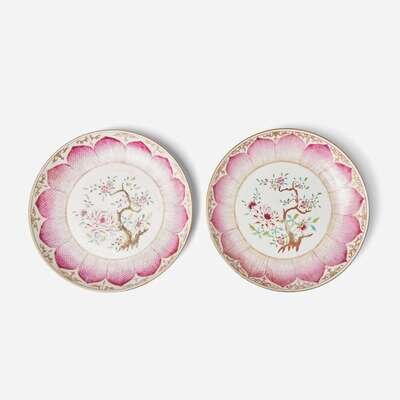 A Pair of Chinese export porcelain "Lotus" dishes 外銷瓷蓮花盤一對 18th century ????