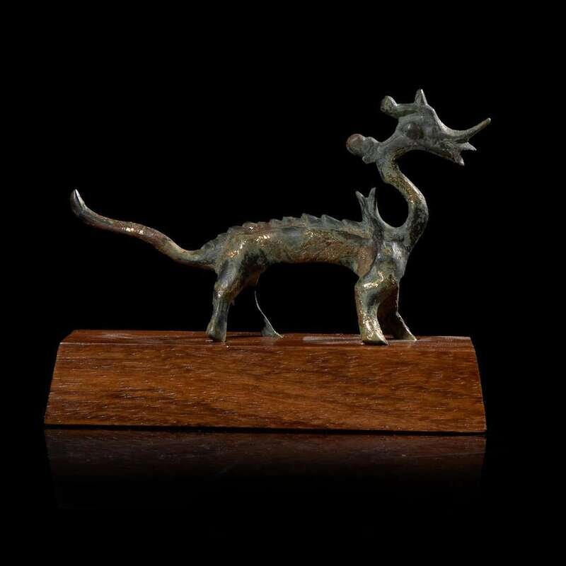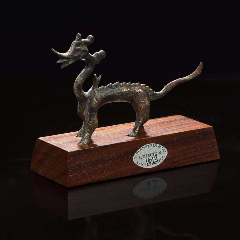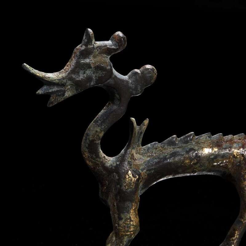 A small Chinese gilt-bronze figure of a striding dragon 铜鎏金行龙 Six dynasties to Tang dynasty ????