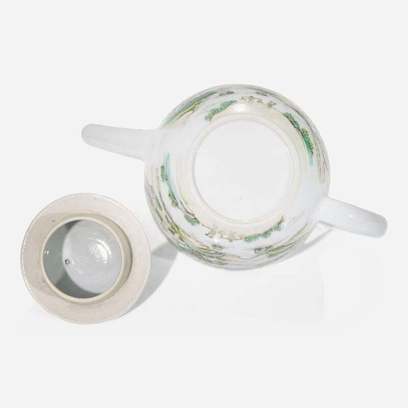 Decorated with figures among landscapes, a diaper band to rim and cover
