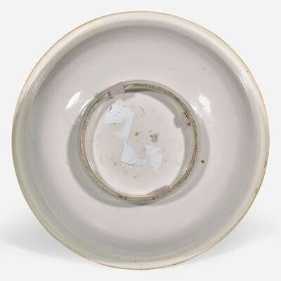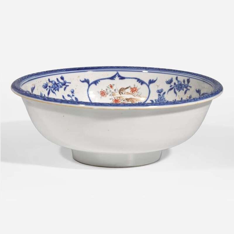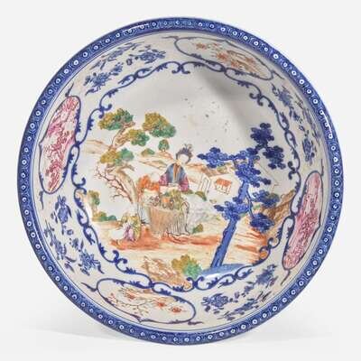 A Chinese underglaze blue and enameled porcelain basin 青花粉彩開光人物小盆 Late 18th century ?????