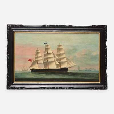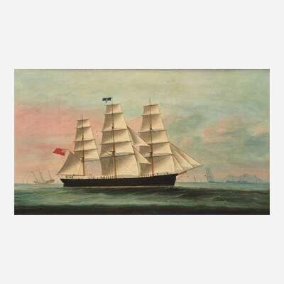 A China Trade painting depicting a British ship off a coast 海上貿易畫 19th century ????