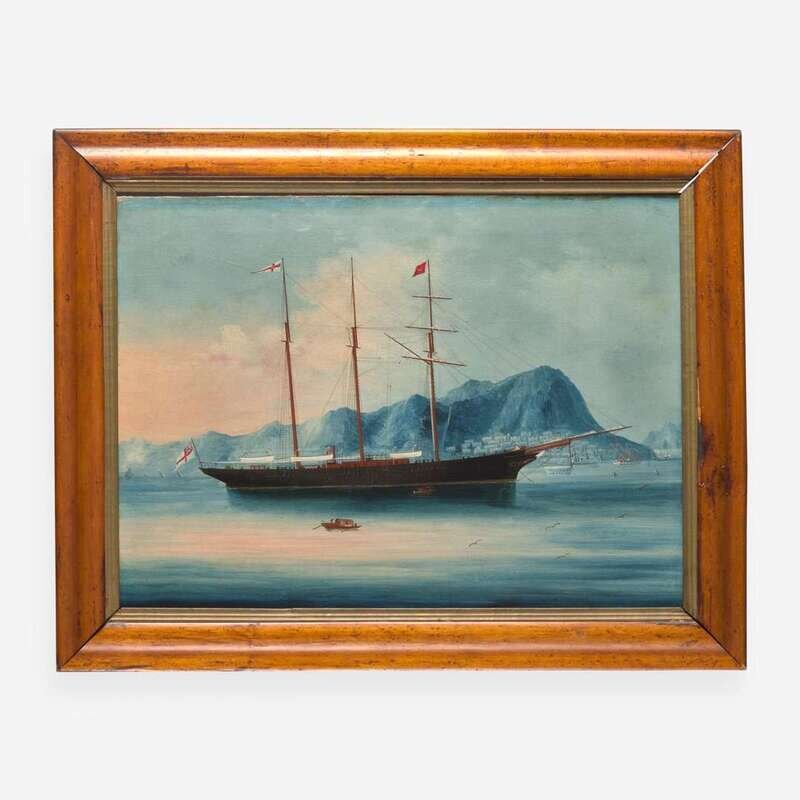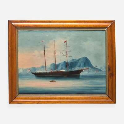 A China Trade painting of a British ship in the Harbor off Hong Kong 香港海上貿易畫