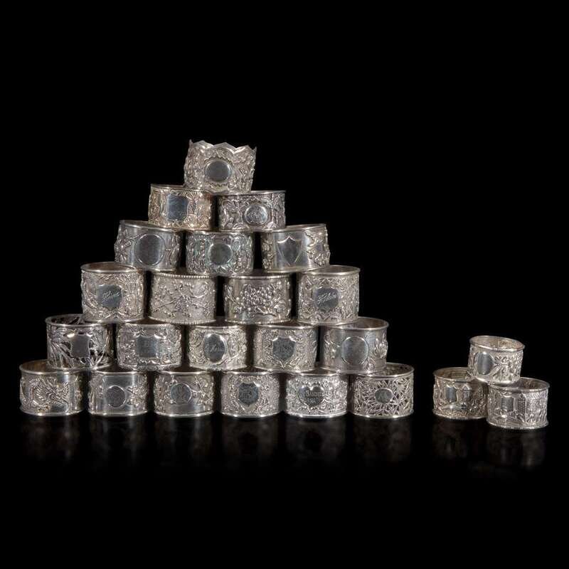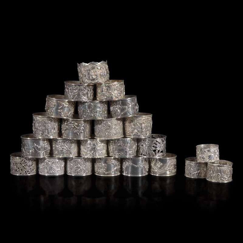A group of 24 assorted Chinese export silver napkin rings 銀環一組二十四件 Late 19th to first part of 20th century ??????????