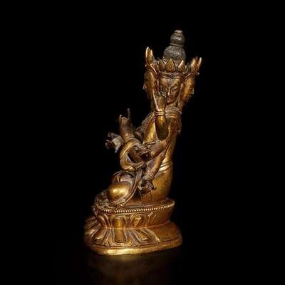 A Tibeto-Chinese gilt bronze figure of a Bodhisattva 藏傳觀音銅鎏金造像 18th century ????