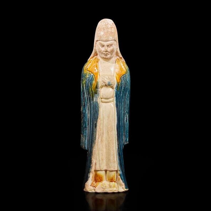 A Chinese sancai-glazed pottery attendant 三彩人物塑像 Possibly Tang dynasty ????