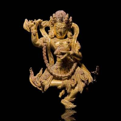 A Tibeto-Chinese or Nepalese gilt bronze figure of a wrathful deity 藏傳佛教銅鎏金造像 15th to 17th century ???????