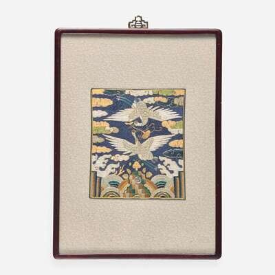 A Korean embroidered silk rank badge 朝鮮刺繡補子 Joseon dynasty (1392-1897) ????