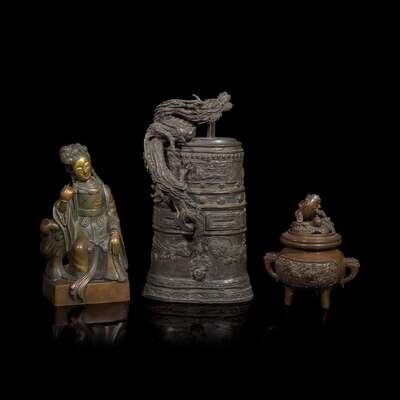 A group of three Japanese and Asian bronzes 日本銅器三件