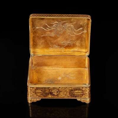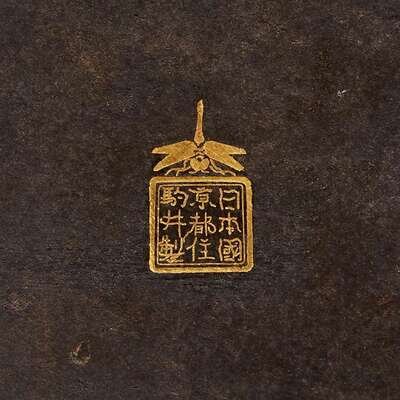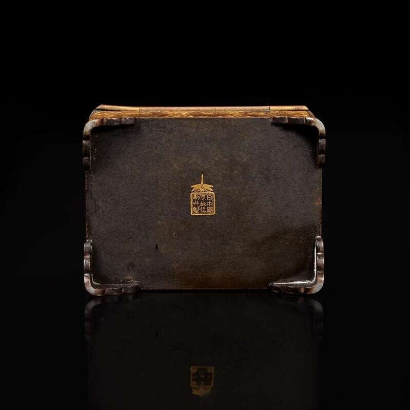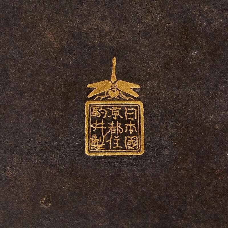 A small Komai, Kyoto gold-inlaid iron box 日本鉗金鐵盒 Meiji period ??