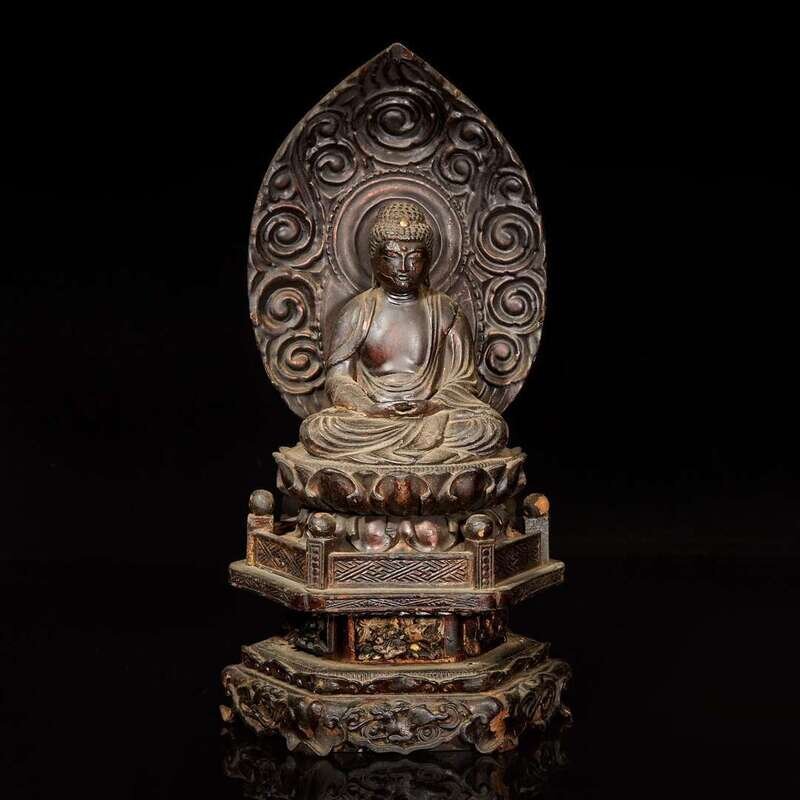 A Japanese lacquered wood figure of Buddha Nyorai 大日如來佛加漆木像 Edo period (1603-1857) ??
