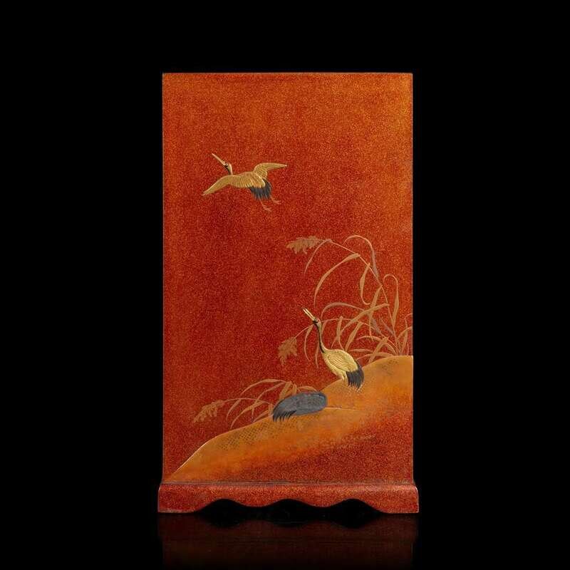 A Japanese lacquered "Cranes" table cabinet 日本漆器小柜 Meiji/Taisho period ?????
