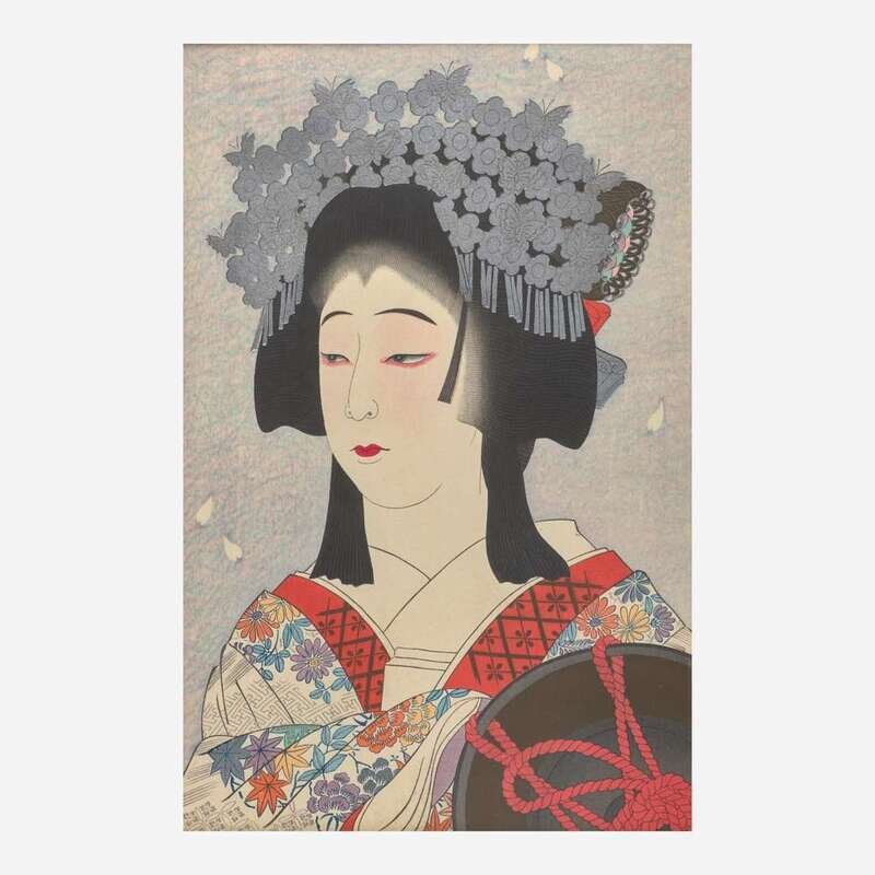 IN FRONT OF THE MIRROR, possibly circa 1950s; LESSER CUCKOO, circa 1930-1950; MOMOSUKI (Peach Moon)