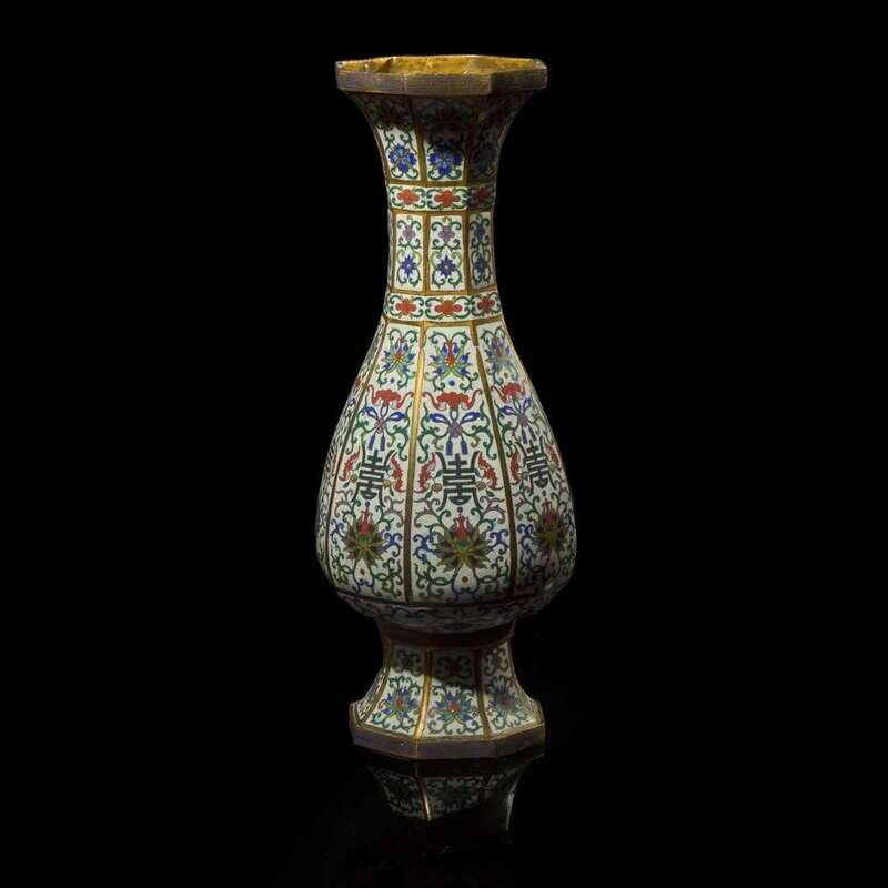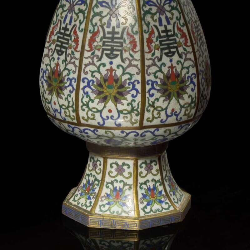 An unusual Chinese cloisonné white-ground octagonal altar vase 景泰藍白地八方瓶 18th/19th century ???????